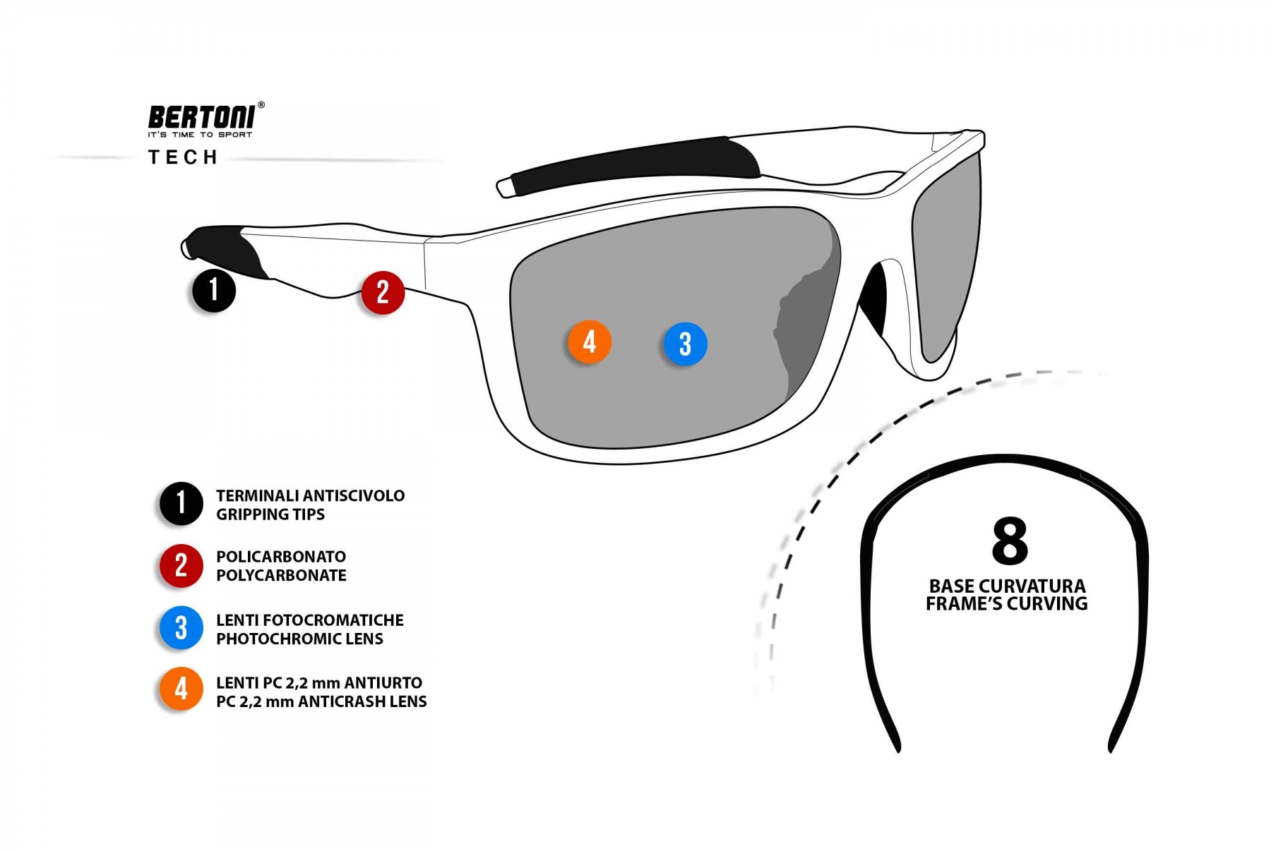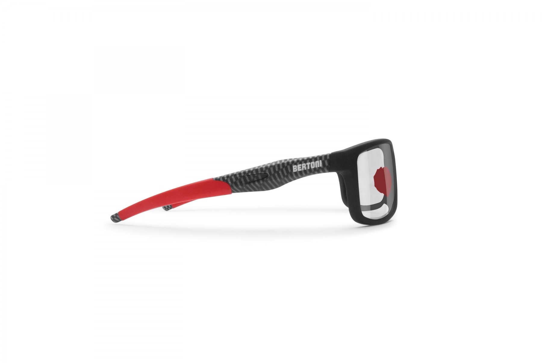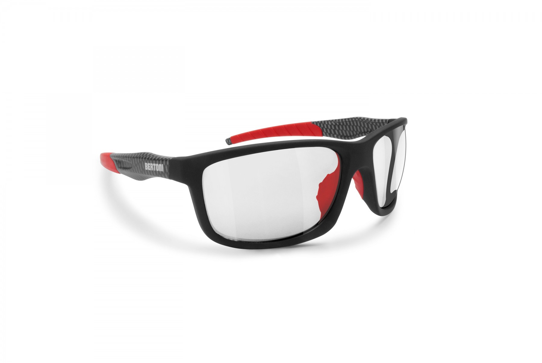 ALIEN F: Cyclingsunglasses with a typically sports-fashion shape. Frame made of impact-resistant polycarbonate with antislip silicone inserts on the temples and on the nose pads. Photochromic lenses in shockproof polycarbonate protect the eyes every day, in the presence of sun, during the night or intermediate weather conditions. In addition, they are treated with a special resin which removes the condensation that forms on the lens surfaces in the transition from hot to cold. The reaction time of the photochromic lenses is very fast: only 8 seconds to go from light to dark, and 35 seconds from dark to light. - Additional Information