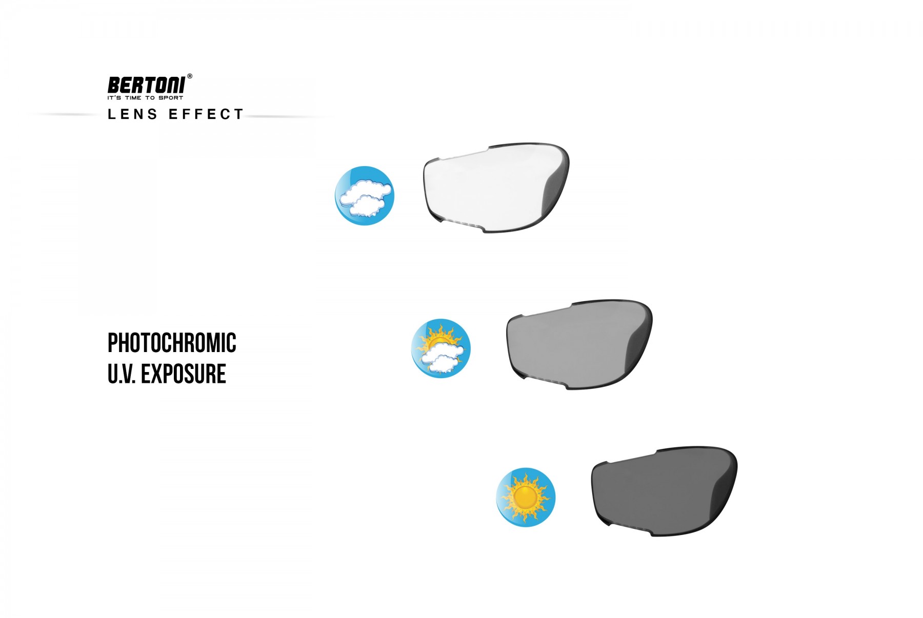 • NEW Lenses - Innovative Technology , react consistently to light, UV and temperature. They darken from category 0 transparent (indoor, foggy days, bad weather) to category 3 sun tint ( outdoors, high brightness ), always with 100% UV protection, this lens adapts itself to changes in light.