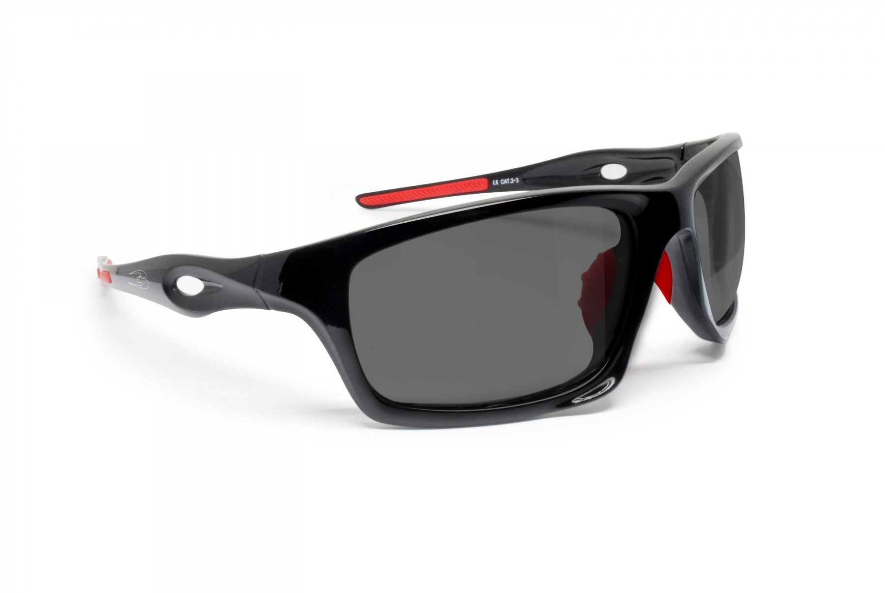 Photochromic Polarized Cycling Running MTB Sunglasses – mod. Omega AFP Photochromatic Polarized by Bertoni Italy: Frame made by Nylon Mesh, shatterproof and extralight, weight 19 grames - Wraparound design: protects the eyes from wind and bad weather, provide enhanced peripheral vision - Size: suitable for all types of faces (narrow to large). Available in 2 matt black / glossy black colors with contrasting beautifiers details. On the occasion of Bertoni's thirtieth anniversary in the world of sports eyewear, Omega, the new born of the house, was laser-branded on the arm with the original “B” 90s logo. Photochromic polarized lenses from light smoke cat. 1 to smoke cat. 2 ( this is the perception of the color of the lenses but thanks to the polarization the protection factor proceeds from cat 2 to 3) - it adapts to changes in light. Polarized lenses reduce reflections of horizontal surfaces - 100% UV Protection. Grip at the tip of the arms and nose-pad, keeps the sunglasses from slipping.