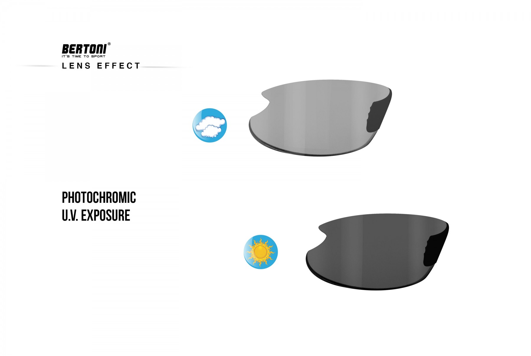 • Photochromic Polarized Cycling Running MTB Sunglasses – mod. Omega BFP Photochromatic Polarized by Bertoni Italy: