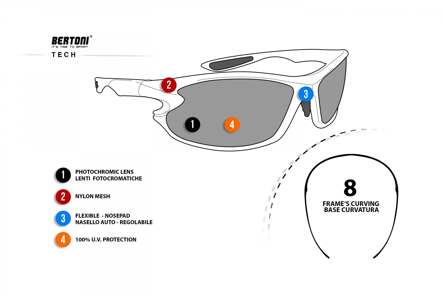 • Photochromic Cycling Sunglasses for men women Running Cycling MTB - F676 Windproof Wraparound Design by Bertoni Italy: