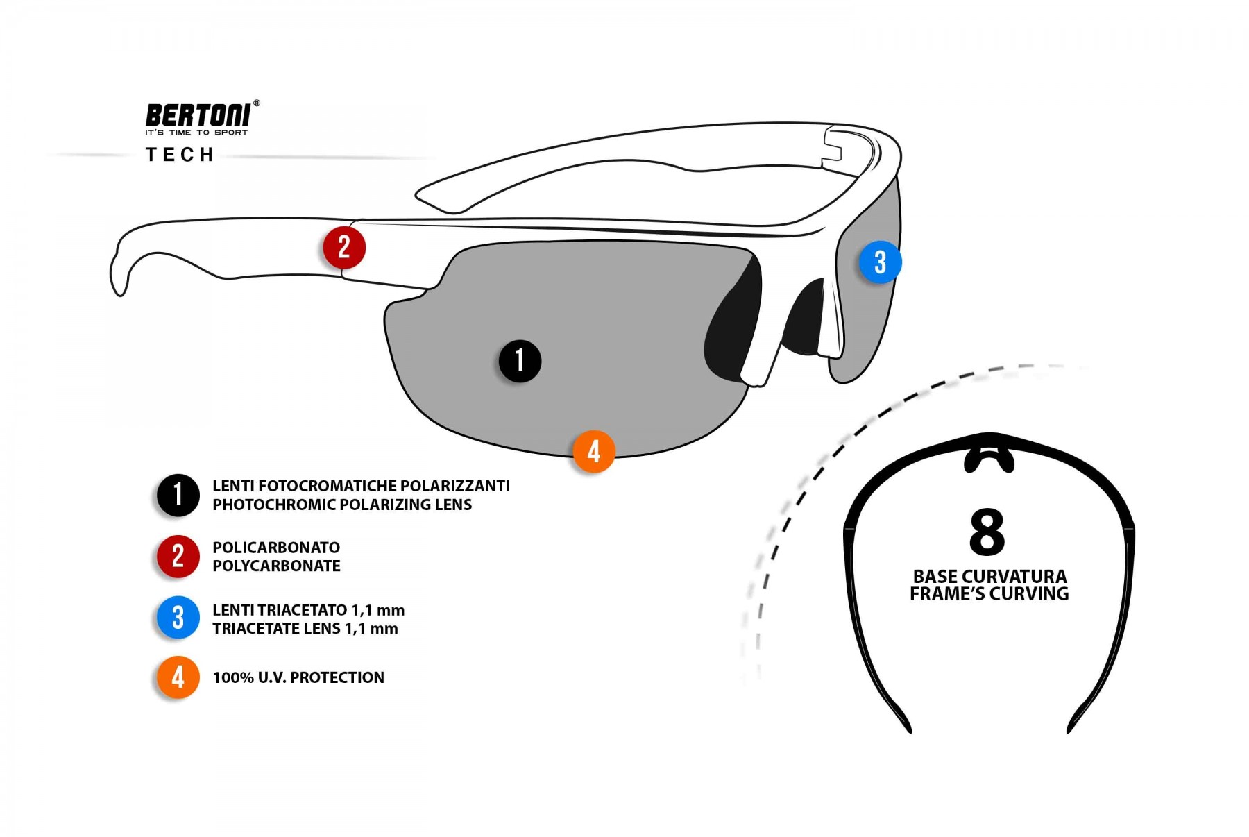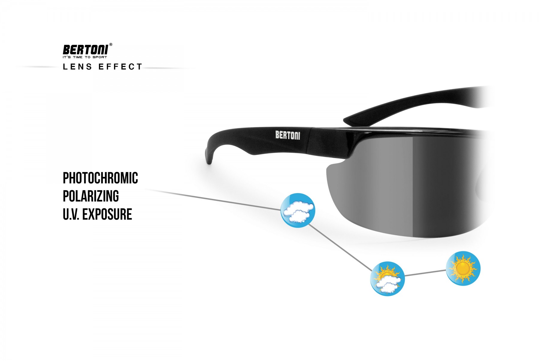 Photochromic and polarized lenses of the sunglasses the P300FT glasses combine the versatility of photochromic lenses to the special anti-reflective action of polarized lenses. The lenses of P300FT are easily interchangeable then makes replaceable by anyone. Excellent as sunglasses for cycling and running, thanks to the polarizing characteristics. - Additional Information